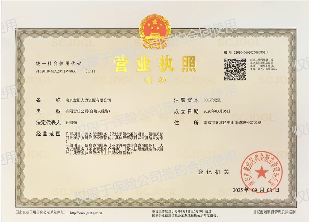 南京意汇人力资源有限公司(简称“意汇人力”)是敏梅集团旗下专注于人力资源综合解决方案的专业服务机构。公司成立于2020年,扎根于集团总部所在地南京,致力于成为连接优秀人才与卓越组织的战略桥梁。我们以“汇聚英才,赋能组织”为使命,深刻理解人才在企业发展中的核心价值,通过专业化、精细化的人力资源服务,为各类组织的稳健发展与转型升级提供坚实的人才供应链支撑。