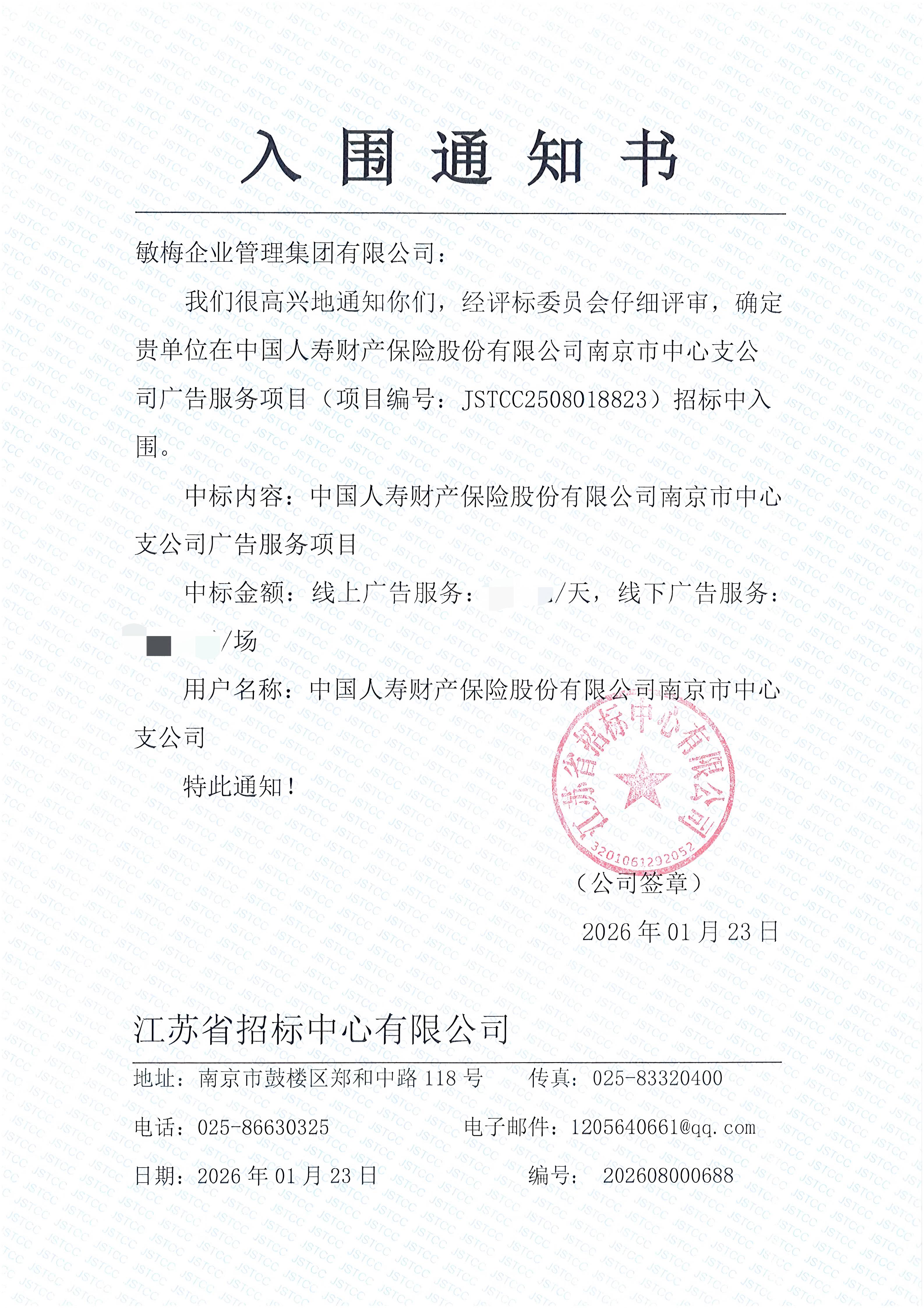 今天要给大家带来一个超振奋的本地喜讯——咱们南京本土的敏梅企业管理集团有限公司,在一众竞争者中突出重围,成功入围中国人寿财产保险股份有限公司南京市中心支公司的广告服务项目啦!