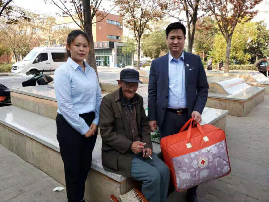 大米、食用油、棉被······一大早,敏梅保代工作人员便载着满满的爱意,顶着深秋的凉风,驱车赶往新铜社区地秀广场,走心慰问。见到工作人员的到来,老人们显得激动万分,拉着工作人员的手说冷暖、敞心扉,久久不愿松开。一声声关心、一分分爱意、一句句祝福,令每一位参战老兵、困难老人都倍感温暖,他们激动地接过饱含心意的慰问品,喜悦之情溢于言表。